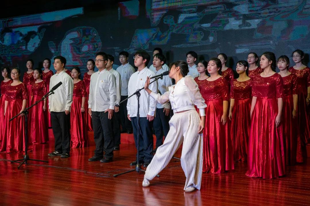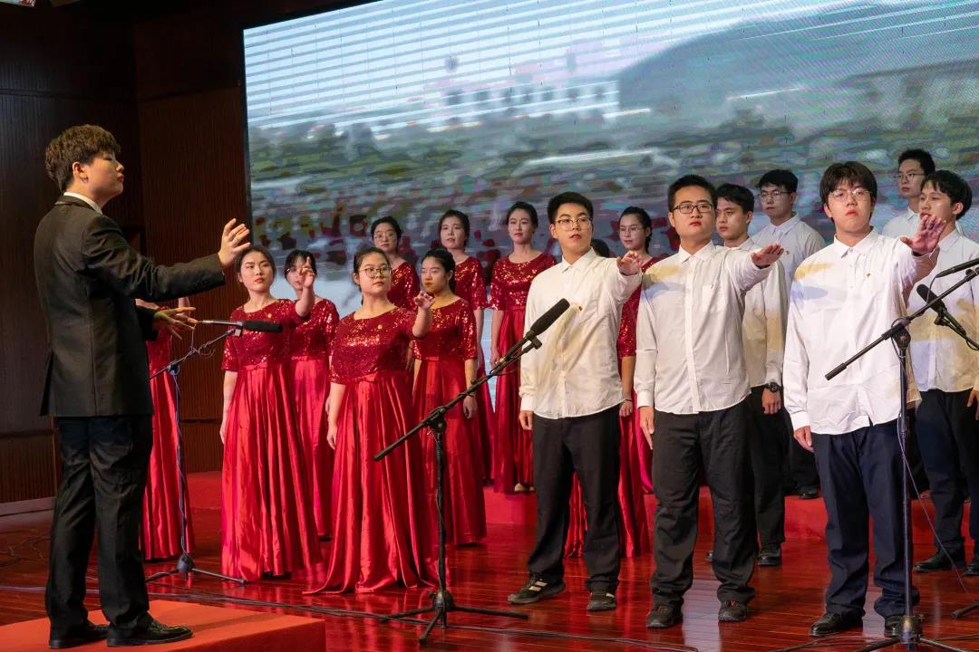 会计系党支代表第二队压轴出场,他们演唱的曲目分别是:《党旗飘扬的方向》,《打起手鼓唱起歌》。