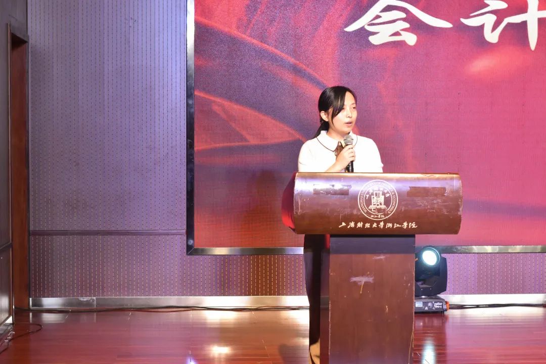 张洁老师致词,表示对2022级新生的热烈欢迎以及对会计系全体学子的期望。希望我们能够成为有作为有担当的新时代青年,新的学年在量的积累下实现质的飞跃,告诫我们不要荒废时光,要合理规划,提高效率,共同进步。发言的最后张老师为会计系全体学生送上祝福,并宣布第十一届会计文化月正式开幕!