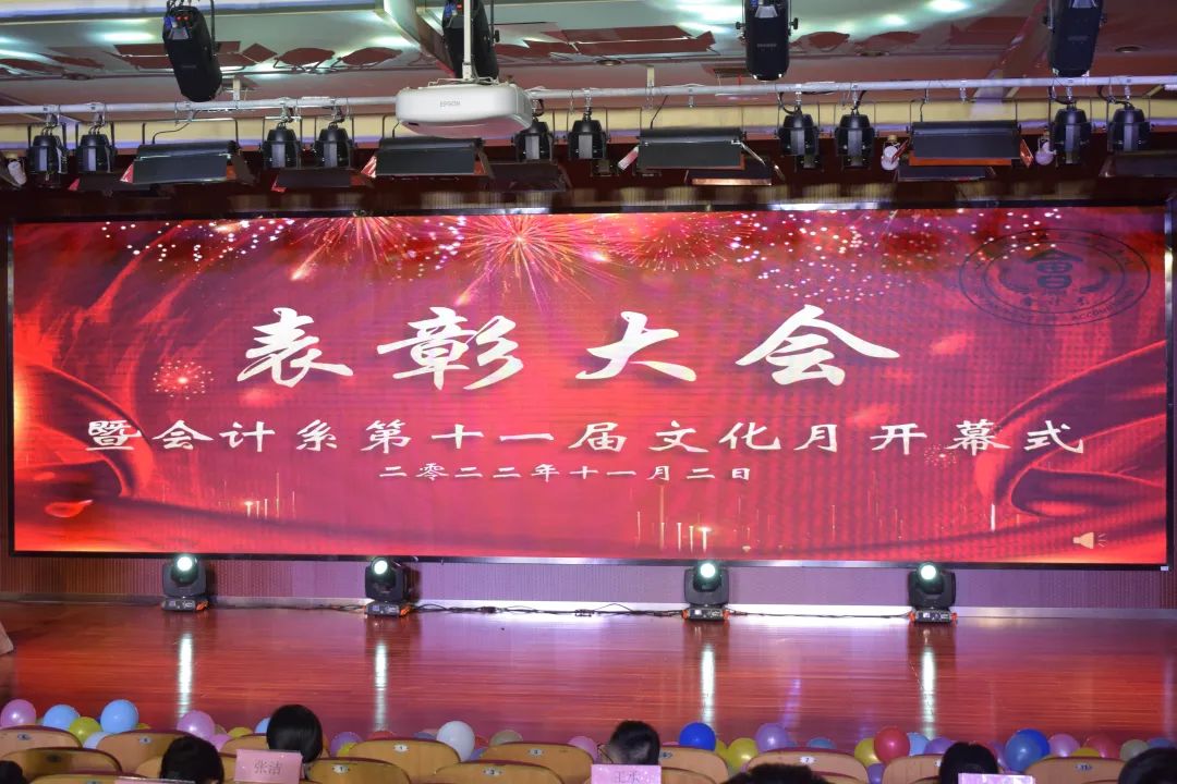 11月2日18时,2021-2022年会计系表彰大会暨第十一届会计文化月开幕式在图书馆报告厅隆重举行。浙商银行金华分行办公室主任项旭明、会计系党总支副书记许海亚老师、会计系副主任张洁老师、会计系主任助理王文红老师、国际会计(ACCA)教研室负责人王金平、以及会计系老师与全体辅导员出席了本次表彰大会。
