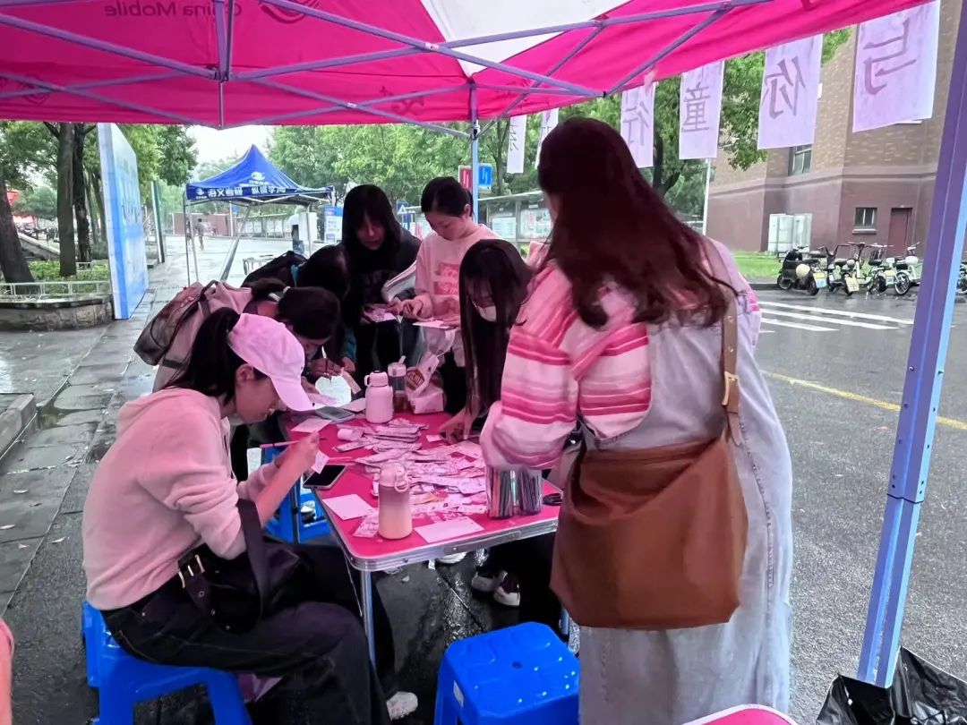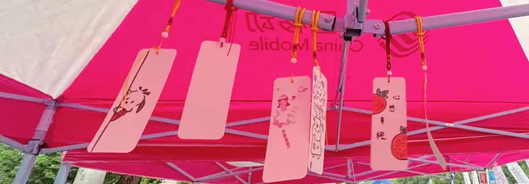 虽然天公不作美,中午便下起了小雨,但前来报名制作书签的同学仍是络绎不绝。“方寸世界,浓浓书香”也祝愿同学们能够以书为伴,不负韶华!