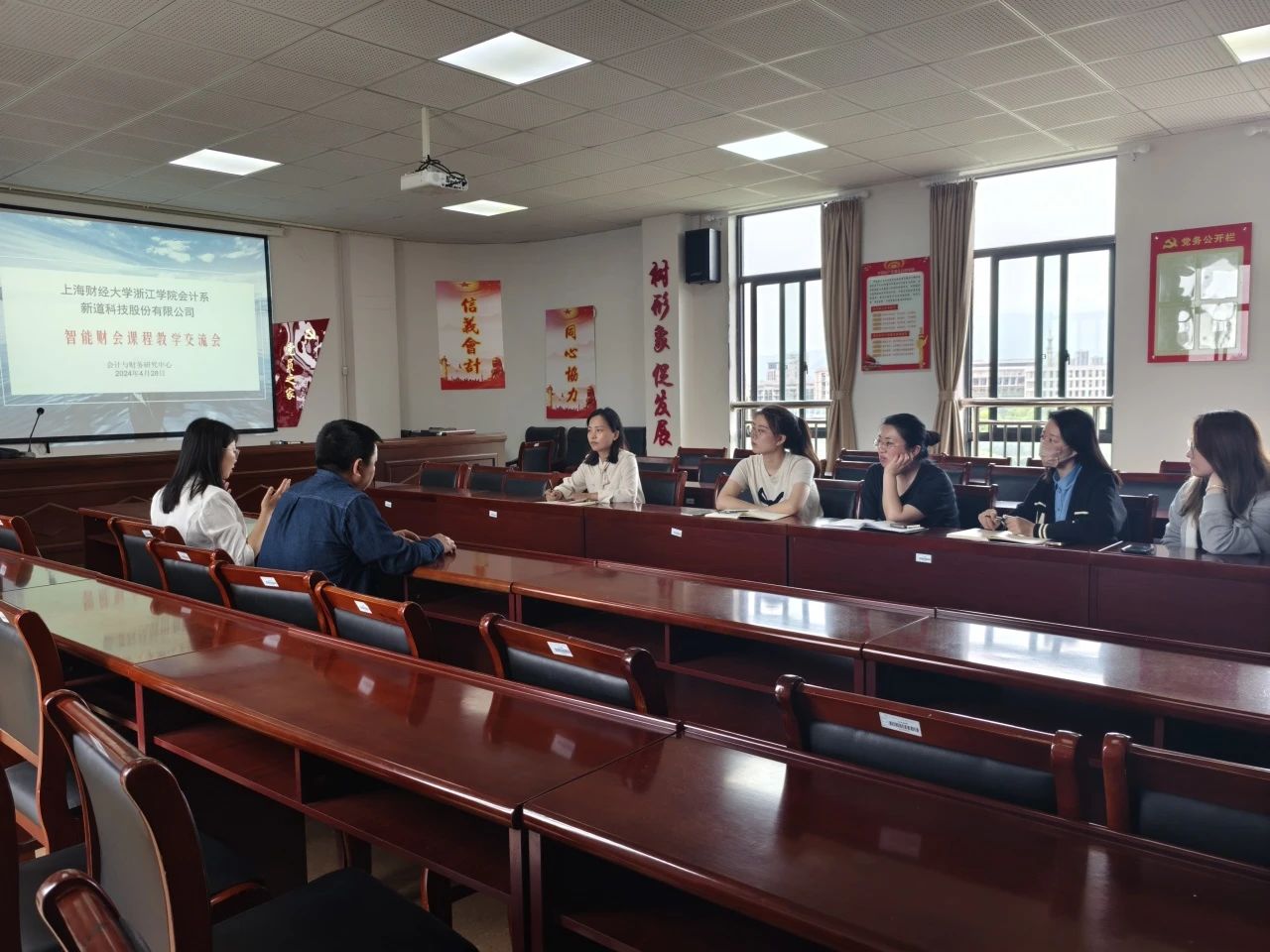 教育部产学合作协同育人项目组召开“智能财会课程教学交流会”。为适应财会数智化变革的时代背景,加强智能财会教学团队建设,上海财经大学浙江学院会计系携手新道科技股份有限公司,共同申请了教育部产学合作协同育人项目《“金财智”品牌下智能财会教学团队建设》。该项目于2023年12月获得立项批准,这标志着会计系智能财会学科建设工作迈入了新阶段。