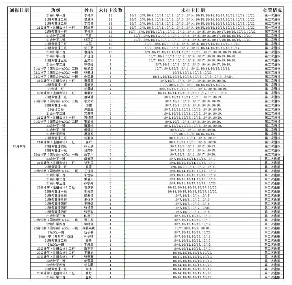截止10月25日,结合今日校园晚归打卡记录,现将相关情况通报如下:
