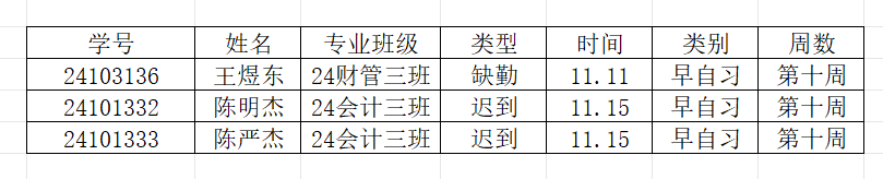 为营造良好的学习氛围,激发同学们的学习热情,倡导会计学子自觉遵守早晚自习相关规定,持续推动我院学风高质量建设,系部组织人员对学生早晚自习情况进行检查,现将检查结果公示如下: