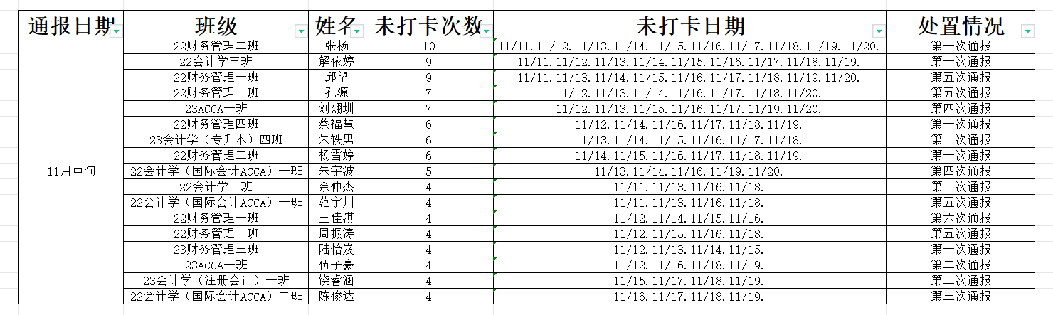 截止11月28日,结合今日校园晚归打卡记录,现将相关情况通报如下: