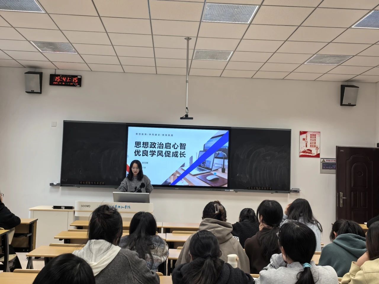 厉老师强调思想政治是灵魂,学风建设是载体。它不仅仅体现在学术诚信、勤奋好学上,更体现在团队协作、用于创新的精神风貌中,我们要在思想政治的引领下,让优良学风成为我们最鲜明的青春底色。
