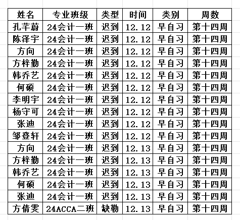 为营造良好的学习氛围,激发同学们的学习热情,倡导会计学子自觉遵守早晚自习相关规定,持续推动我院学风高质量建设,系部组织人员对学生早晚自习情况进行检查,现将检查结果公示如下: