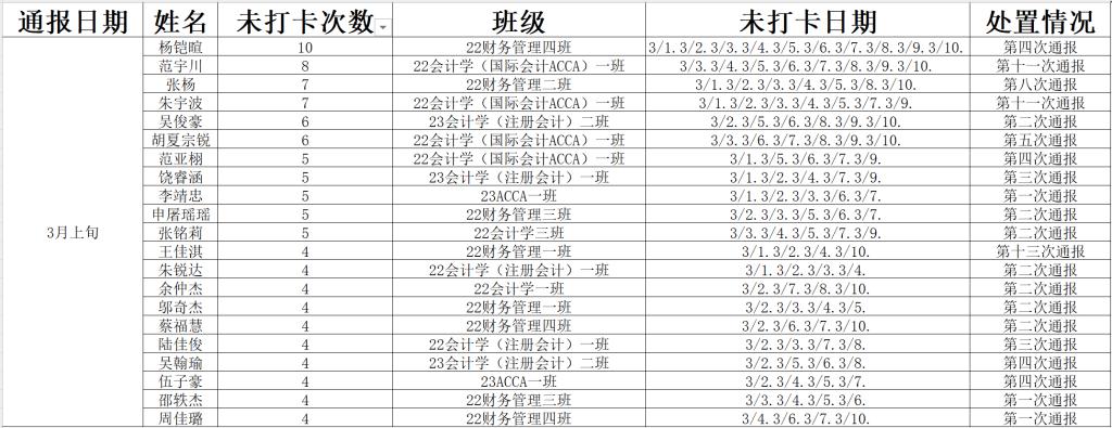 截止3月10日,结合今日校园晚归打卡记录,现将相关情况通报如下: