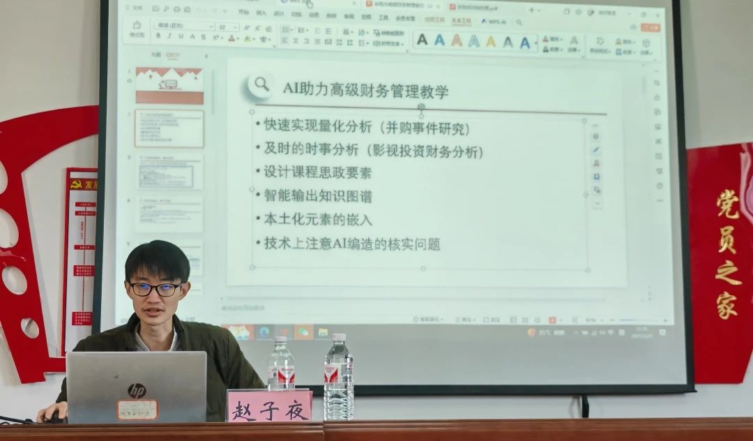3月27日,我系会计与财务研究中心在29幢420会议室举办了一场题为“AI助力高级财务管理教学”的讲座。讲座由上海财经大学会计学院教授、博士生导师赵子夜主讲,王霞老师主持,全体教师参与此次讲座。