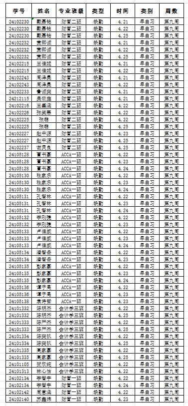 为营造良好的学习氛围,激发同学们的学习热情,倡导会计学子自觉遵守早晚自习相关规定,持续推动我院学风高质量建设,系部组织人员对学生早晚自习情况进行检查,现将检查结果公示如下: