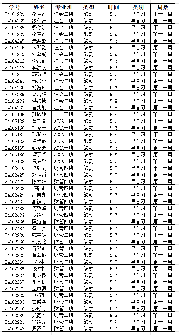 为营造良好的学习氛围,激发同学们的学习热情,倡导会计学子自觉遵守早晚自习相关规定,持续推动我院学风高质量建设,系部组织人员对学生早晚自习情况进行检查,现将检查结果公示如下:
