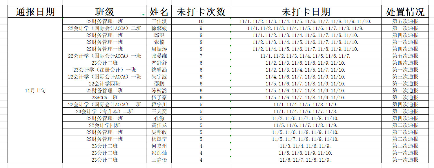 截止11月15日,结合今日校园晚归打卡记录,现将相关情况通报如下: