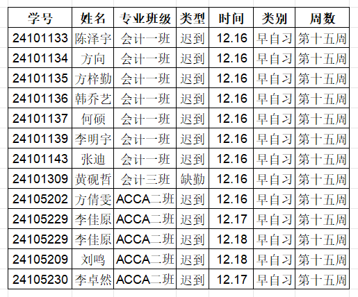 公示时间:12月22日-12月24日。如有意见可联系会计系学工办反映。