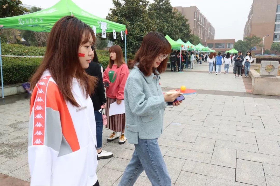 乒乓聚人心:四人一小组,每人按指定路线运送乒乓球,并依次喊出2个有关革命成语。完成路线即为通关。这个活动不仅需要相关知识,更需要团队默契和稳健的步伐。