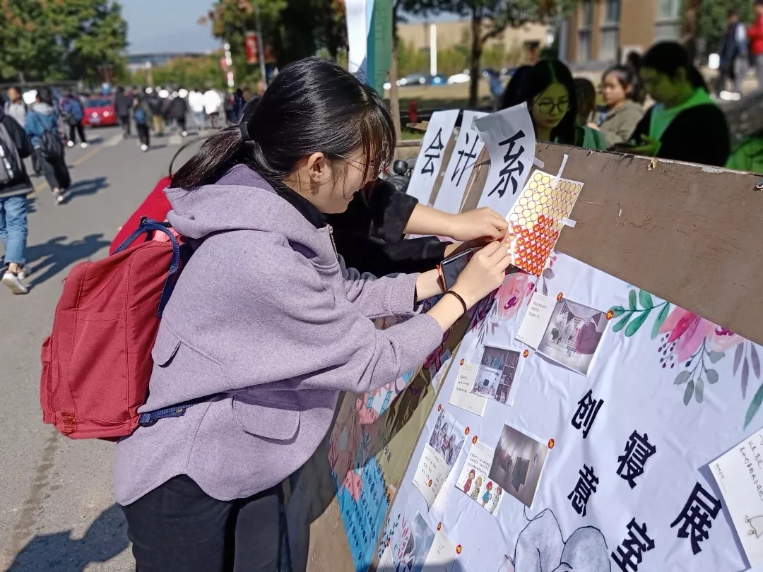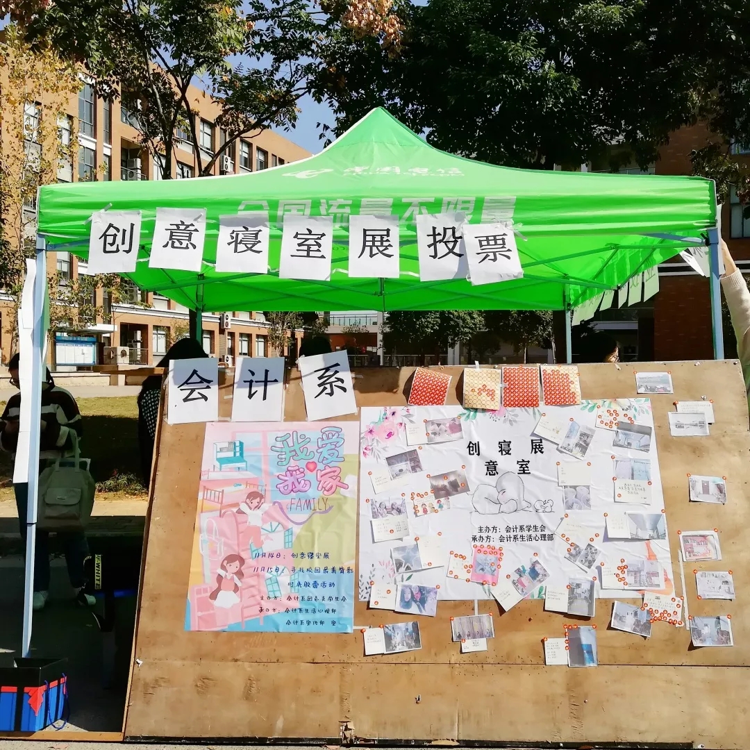 为了增进寝室成员的友谊,帮助新生尽快适应大学寝室生活,会计系团总支学生会在11月14日于主干道举办了“创意寝室展”活动。