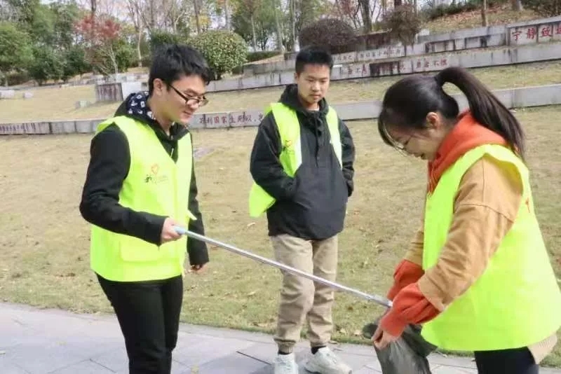 同学们身穿亮眼的志愿服,一手持夹子,一手提袋子,互帮互助,和谐共处,尽心尽力地搜索每一处角落,捡拾垃圾,合理投放,为打造零垃圾环境而保持热情,充满斗志。