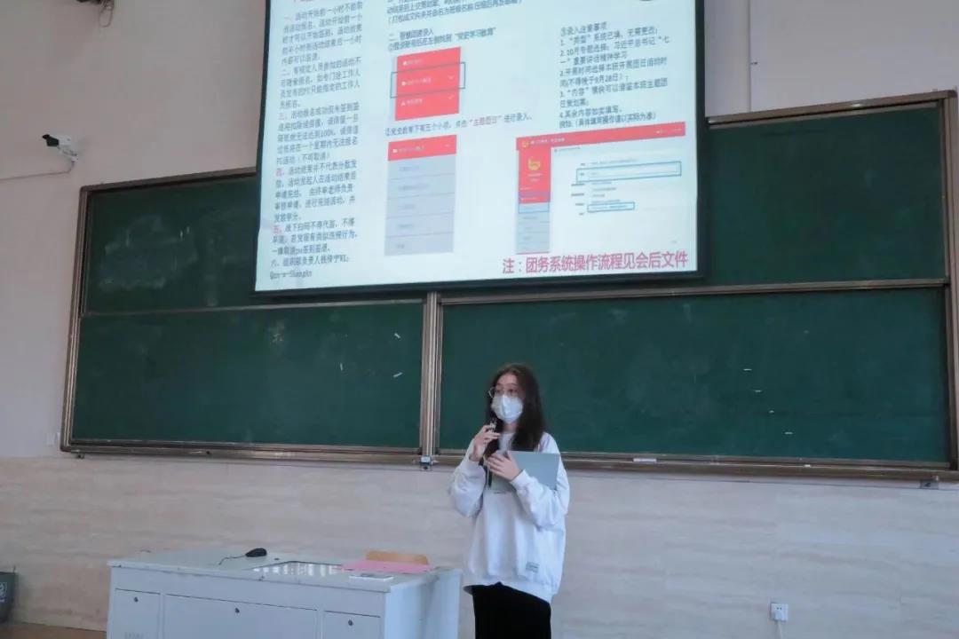 会计系团总支学生会主席张乐欣同学关于会计系PU注意事项、团日活动流程、青年大学习、班级志愿流程及志愿时长、学生请假及请假注意事项、寝室注意事项做了相关介绍。