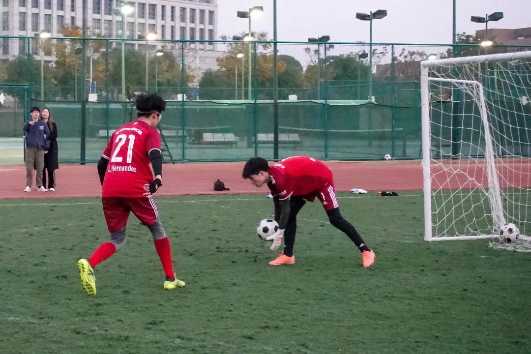 上半场,会计一队便通过角球机会以及丁子康敏锐的门前嗅觉光速破门,将比分改写为一比零。在此之后,双方虽互有攻势,却未能为自家球队拿下一分。会计一队严防死守,准备将一比零的比分拖到比赛结束,但是百密一疏,统计一队在比赛临近结束之际打入了扳平比分的一球,最终比赛进入点球环节。点球环节,会计一队出师不利,被对方门将扑出,对方前锋也没能把握机会,双方颗粒无收,第二轮点球,双方都稳稳将球罚进,比赛进入白热化。