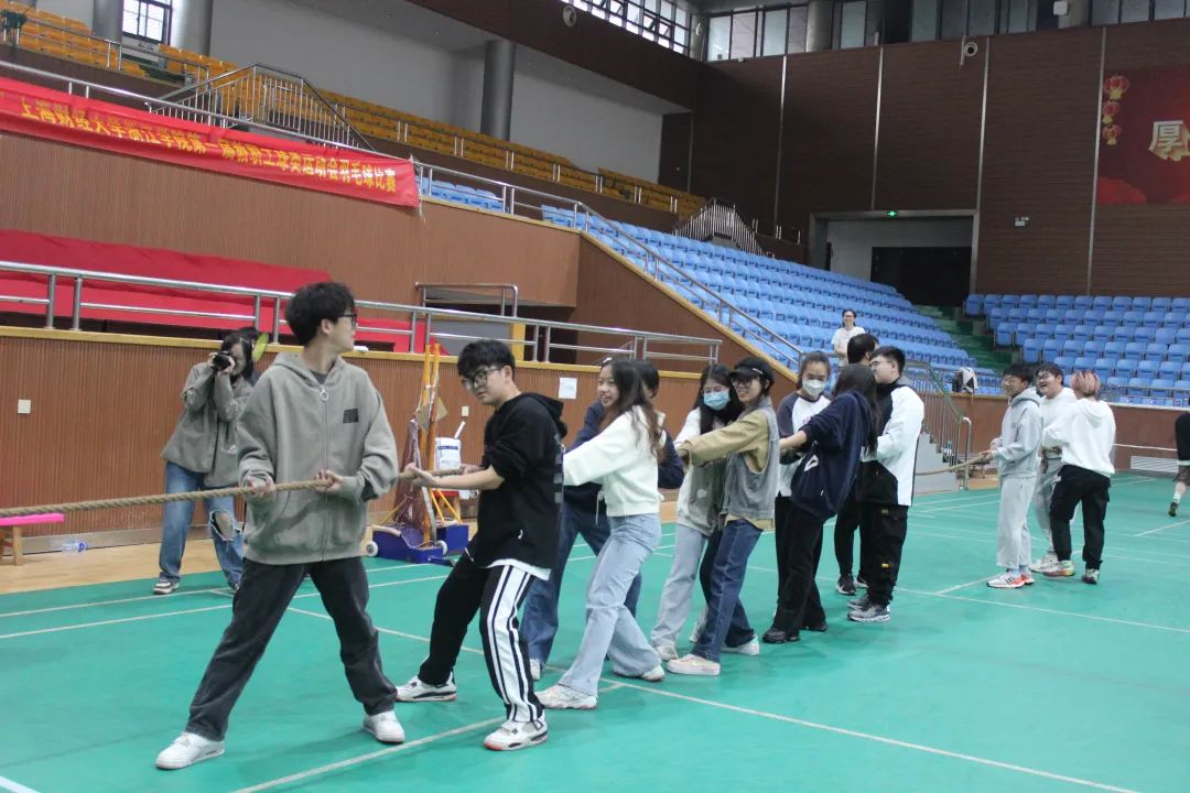比赛哨声响起,队友们全都紧握绳子,卯足了劲把绳子往后拉。在一旁的同学们为自己的班级加油呐喊着,仿佛恨不得抓起绳子跟选手一起努力,整个场面既激烈又温馨。