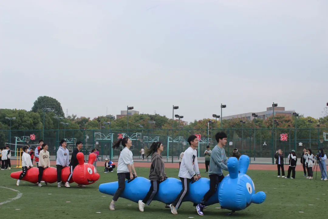充满欢声笑语的毛毛虫竞速,不仅体现了同学们的青春活力,也增强了团队配合能力。空气中已有丝丝凉意,但前来助威加油的人仍不在少数,使赛场氛围十分热烈。