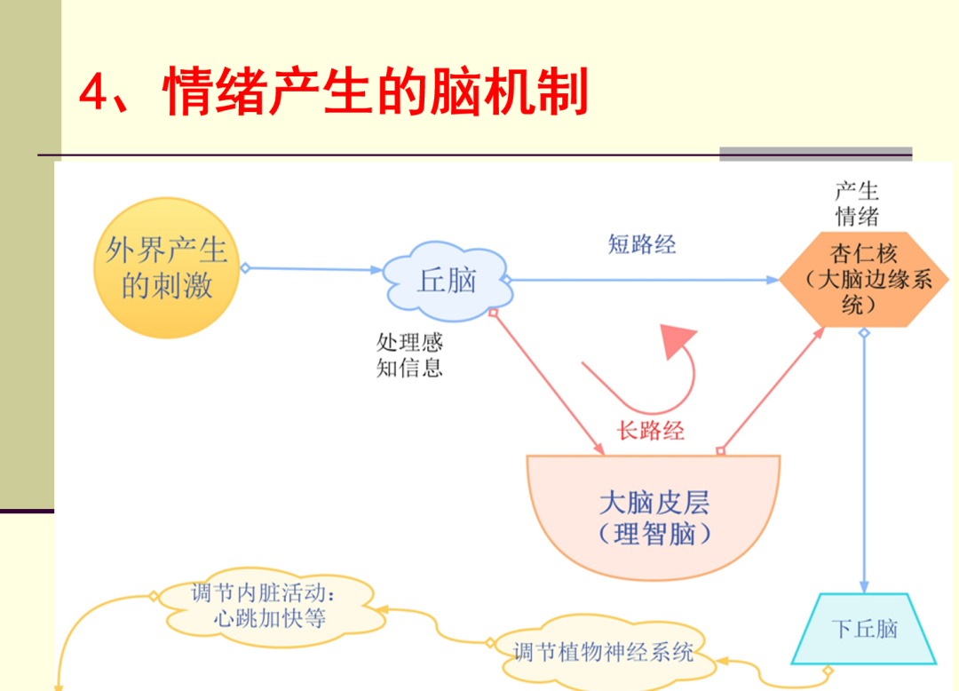 在杨老师的带领下,我们从情绪的特性、情绪对人的影响、情绪与需要的关系、情绪产生的脑机制这四方面认识了情绪。