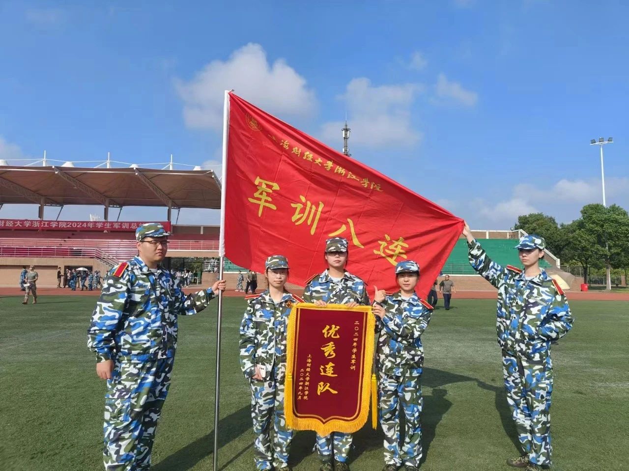 在2024年上海财经大学浙江学院军训汇报表演中,会计系由23级学生组成的第八连队、第九连队和由24级学生组成的第二十六连队,荣获优秀连队称号!