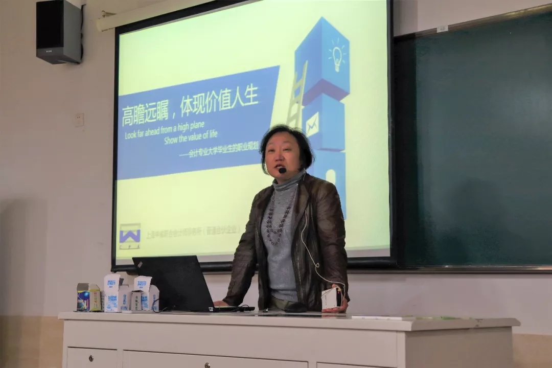 11月27日18时30分,由会计系举办的“财会类大学生职业规划(高瞻远瞩体现价值人生)”讲座于7-208举行。本次讲座由高级会计师、上海申威联合会计师事务所主任会计师、注册会计师、资产评估师、房地产估价师薛爱琼老师主讲,会计系国际会计教研室主任王金平老师出席了本次讲座。