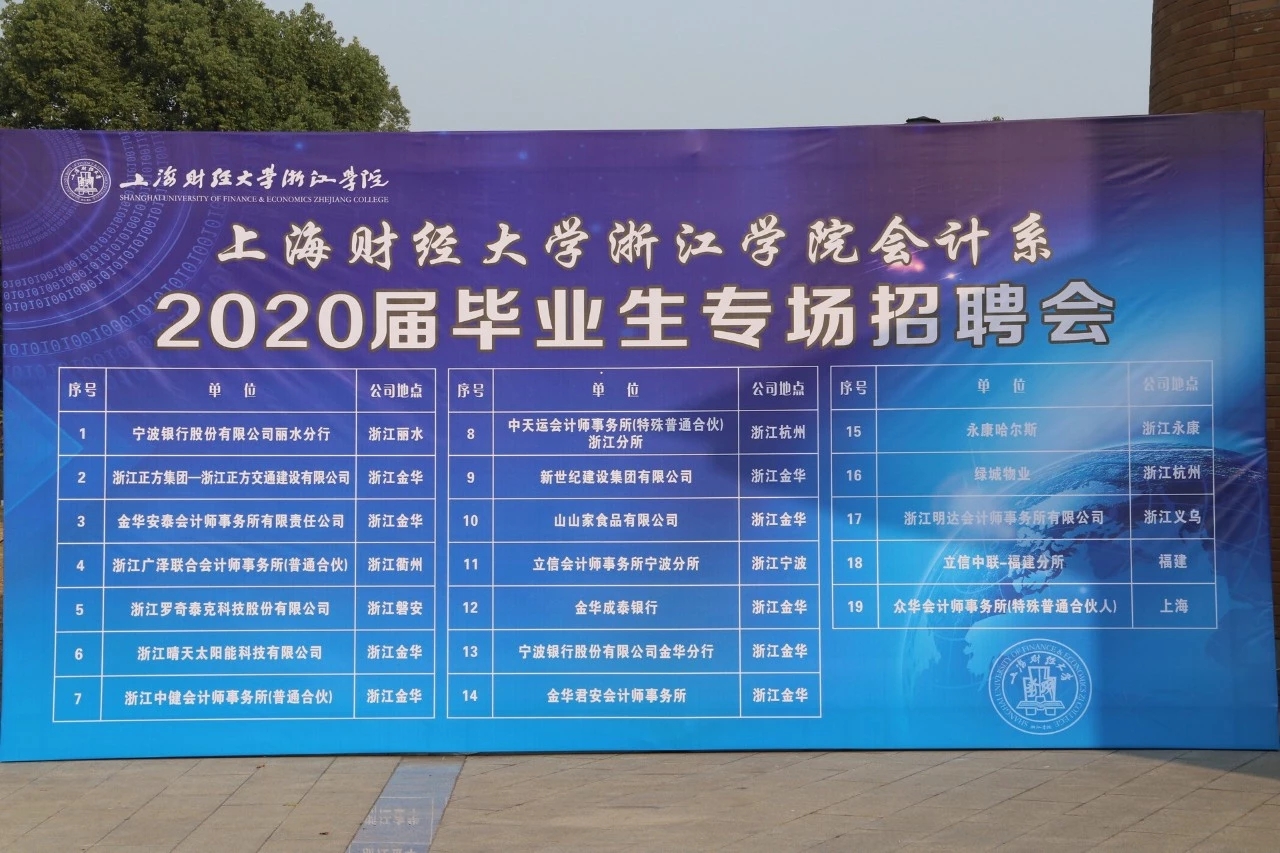 10月9日上午,上海财经大学浙江学院会计系专场招聘会在校园行政楼29幢一楼如火如荼地进行。