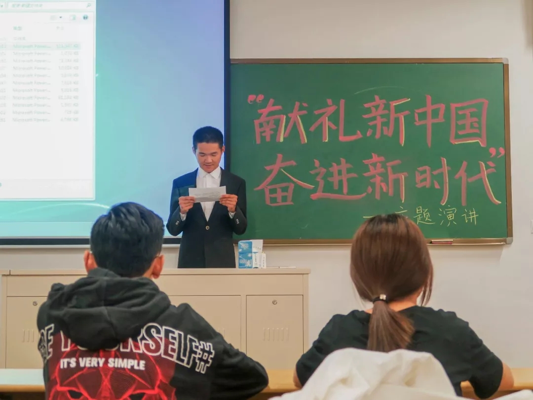 10月25日18时30分,由会计系团总支学生会学术科技部举办的“献礼新中国,奋进新时代”演讲赛在教学楼9栋105正式开幕。会计系学工办主任王文红老师,团学指导老师徐行天出席本次大赛,系学生会副主席郑晴,系团总支兼职副书记詹朝勋,会计系团总支学生会主席团顾问李晗琰,朗诵比赛省奖获得者张永康,组织部部长蔚晗滢,学术科技部部长卢思鸿担任本次比赛的评委。