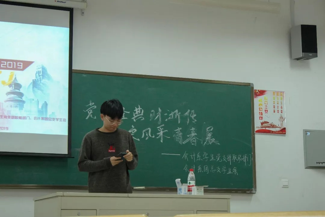 11月24日下午2时,“党团经典财浙传,红色风采青春展”活动拉开了帷幕。本次活动由会计系党总支主办,会计系学生党支部和会计系团总支学生会联合举办。会计系部分同学参加了本次活动。