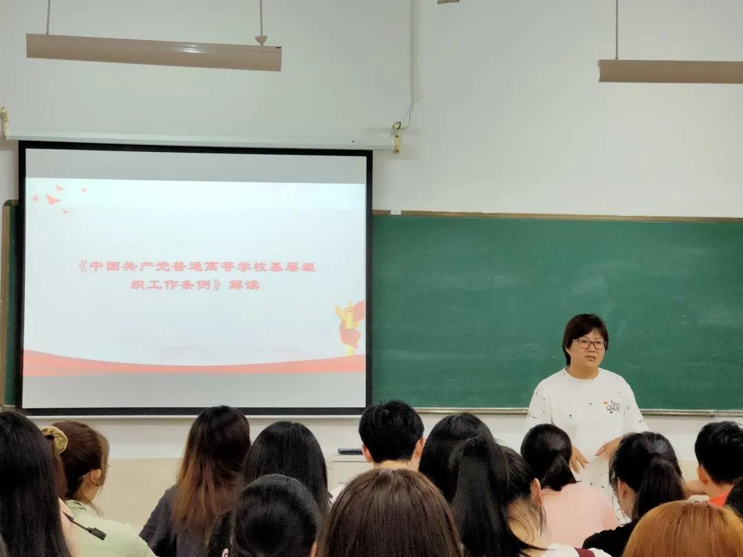 为了让同学们深入了解高校基层组织工作条例,贯彻关于党的建设和组织工作重要思想。9月13日晚上18:30在教学楼七幢115教室,由会计系党总支副书记许海亚同志主持开展了会计系学生党支部职能部门的夜学会第一讲。