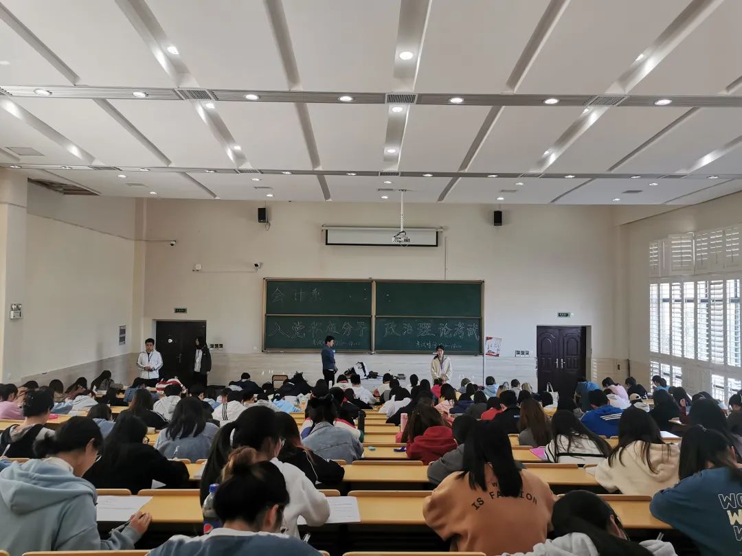 2021年3月26日12时30分,会计系学生党支部在教学楼6幢102开展入党积极分子政治理论考试。