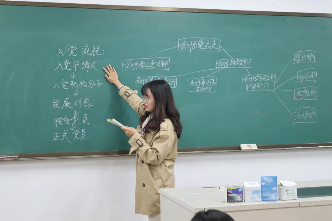 为营造大一良好学习氛围,及时关注班级动态,会计系学生党支部组建了一支学生党员的宣讲团,由学生党员们入驻到各个班级,开展以“端正入党动机,了解入党流程”为主题的教育班会,加深新生们对党的性质、方针、路线、政策的了解,帮助他们端正入党动机,提高政治思想觉悟,早日向党组织靠拢。