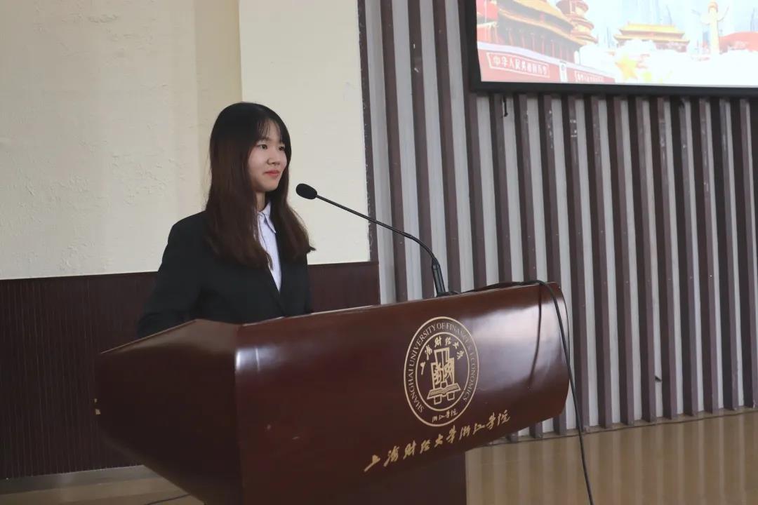 原会计系第一学生党支部负责人兼职能部门主任陈娇同志进行2019-2020学年学生党建工作总结汇报。
