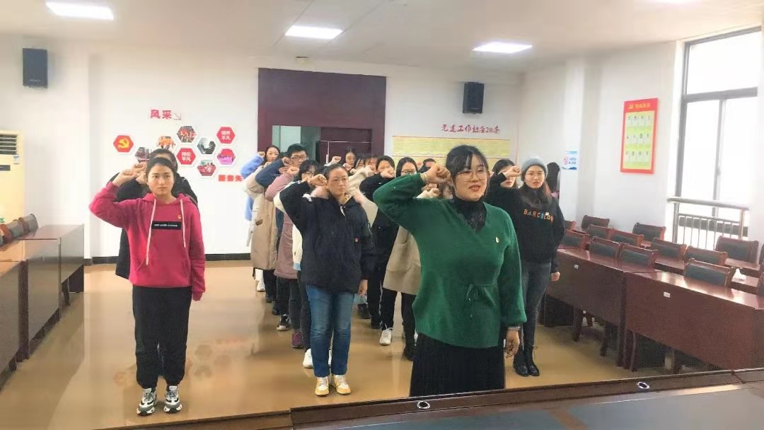 2020年1月4日下午,新发展党员在行政楼29幢414庄严宣誓,“我志愿加入中国共产党,拥护党的纲领,遵守党的章程,履行党员义务,执行党的决定,严守党的纪律,保守党的秘密,对党忠诚,积极工作,为共产主义奋斗终身,随时准备为党和人民牺牲一切,永不叛党。”