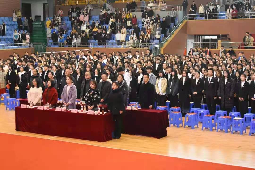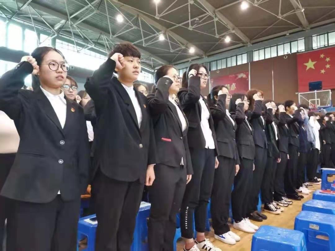 2019年12月12日15时,会计系学生党支部于体育馆举行新发展党员宣誓大会,本次大会共有42名新发展党员参加。