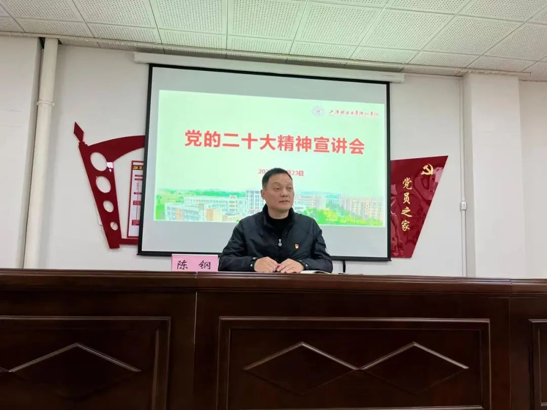 陈钢书记强调,我们要把学深悟透党的二十大精神作为当前和今后一段时间的头等政治任务,教师群体尤其要带好头,主动把二十大精神有机融入课堂教学、理论研究和服务实践中,用党的创新理论武装头脑、引领实践、助力工作。