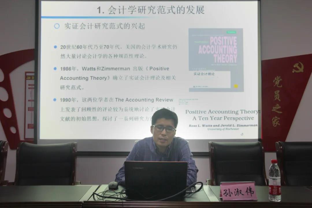 11月18日晚上,会计系邀请上海对外经贸大学会计学院孙淑伟副教授,以“会计学研究范式与前言”为主题开展讲座,对提高教师科研能力及专业研究做出指导。会计系全体教师参加了此次讲座。