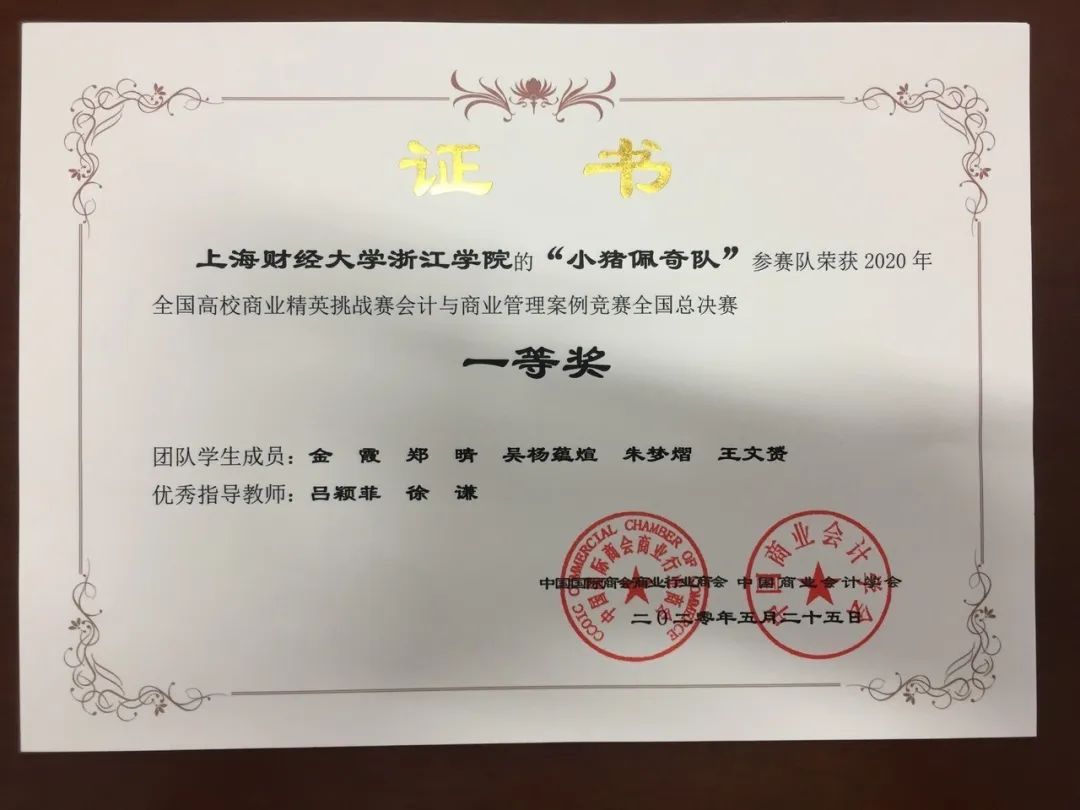 近日,会计系学子喜获2020年全国高校商业精英挑战赛会计与商业管理案例竞赛一等奖两项,分别是《奥飞商业计划书》“王中王队”(团队成员:章艺蔚、钟佳琪、陈妤、阮琼弘、张皓天)和《奥飞Flyback计划》“小猪佩奇队”(团队成员:金霞、郑晴、吴杨蕴煊、朱梦熠、王文赟),其中“王中王队”将代表大陆地区参加海峡两岸与港澳地区总决赛。会计系学习在该项全国性赛事上实现了零的突破。