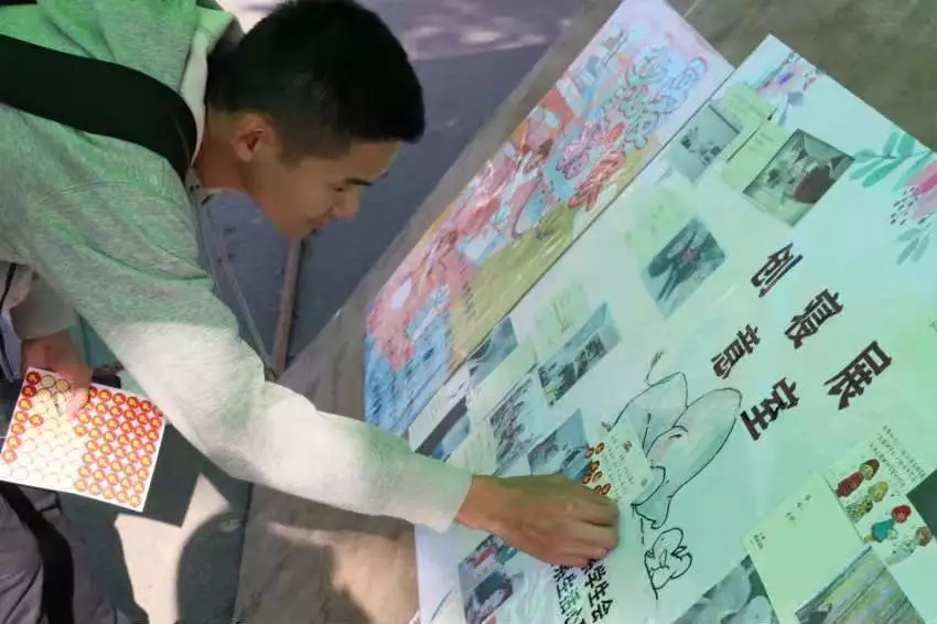 学生投票:积极的同学们谨慎地选择着自己喜欢的照片。颜值和内涵的比拼,究竟谁才是最后的赢家,决定权就汇聚在每位同学的手中。