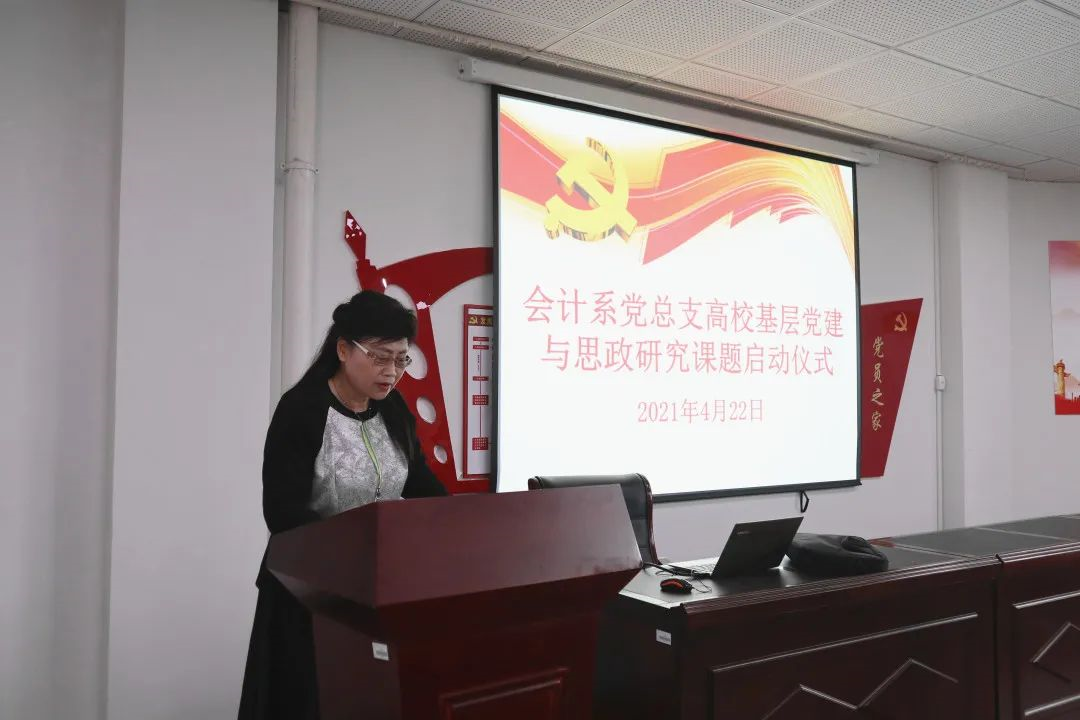 为庆祝中国共产党成立100周年,2021年4月22日12时40分,上海财经大学浙江学院会计系党总支在29幢414党员之家启动高校基层党建与思政研究课题,本次仪式由李昀同学主持。