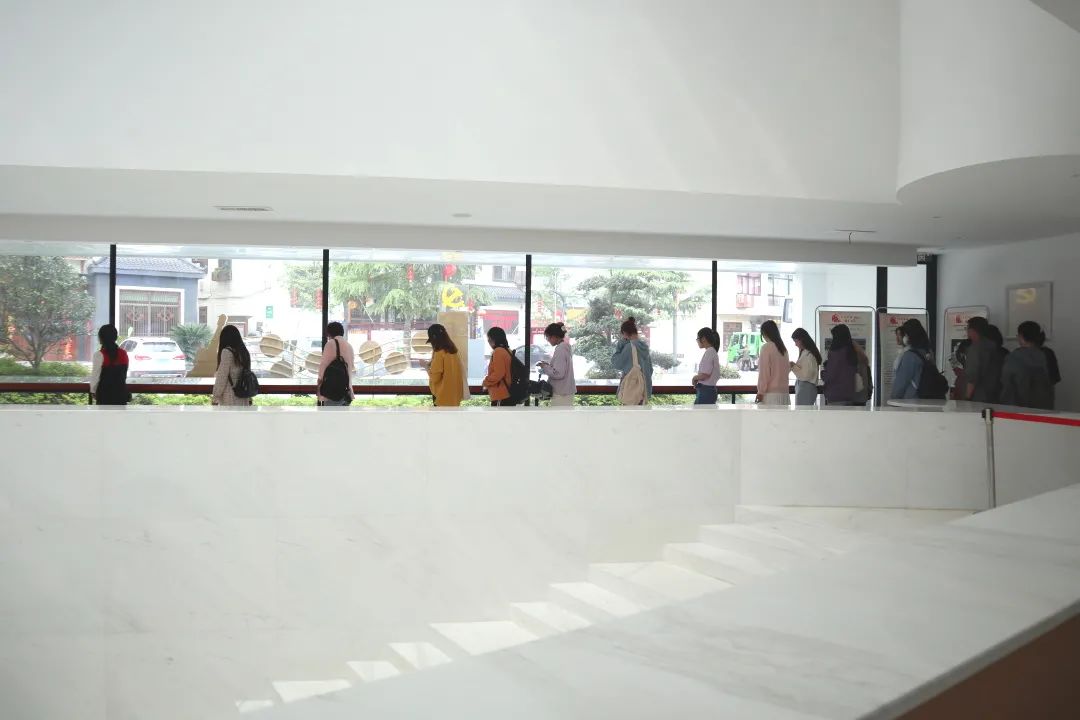 进入施光南纪念馆,探访继续进行。纪念馆共分为三层:地下一层是一个音乐空间,在这里师生们一起收听了施光南先生的音乐作品,以及欣赏了他的音乐纪念会和电视节目录像;一层纪念厅通过长卷的方式来展示施光南创作的曲谱手稿和日记;二层展示厅珍藏着施光南先生1300多份创作手稿。同学们紧跟着解说员的步伐依次浏览,展出的含有墨迹的手写音符仿佛就萦绕在同学们的耳畔。