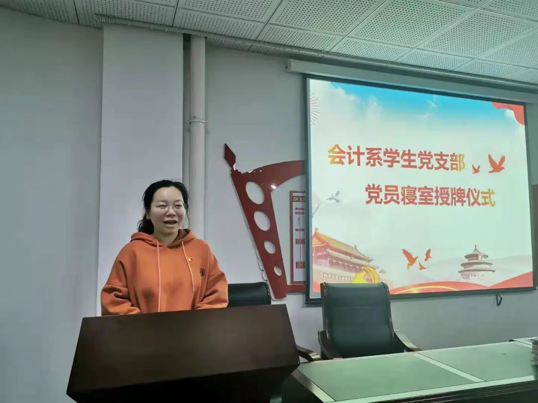 2021年3月30日,会计系学生党支部在29幢414党员之家举行“党员寝室”门牌授牌仪式。本次授牌仪式由学生党员蒋艳、高伟舟组织召开。