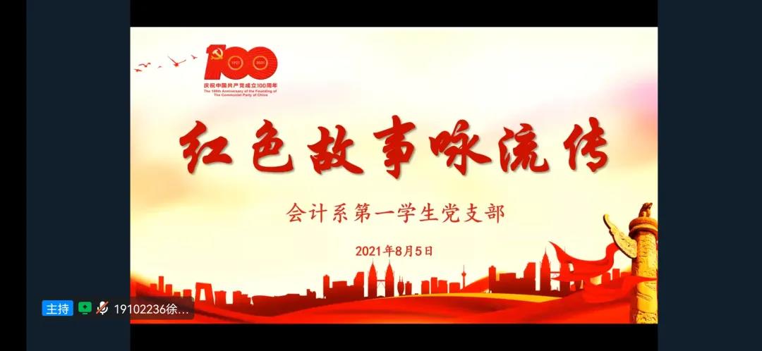 2021年8月6日下午18时30分,会计系第一学生党支部开展以“红色故事咏流传”为主题的微党课,本次微党课由徐佳耀同志主持。