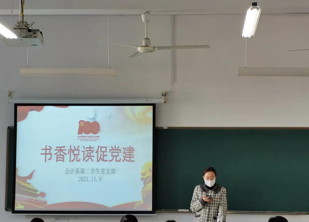 2021年11月9日中午12时30分,会计系第二学生党支部在7-206教室开展以“书香悦读促党建”为主题的读书会,本次读书会由卢雅斯同志主持。