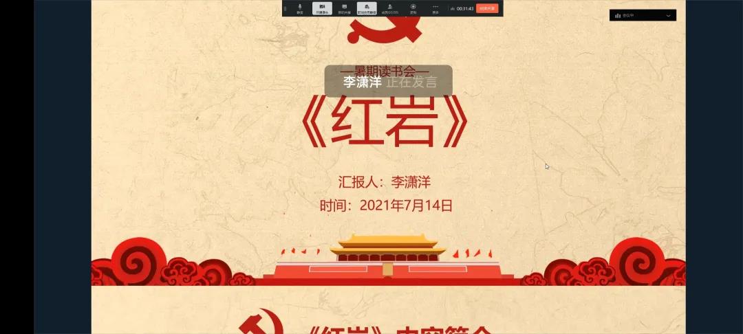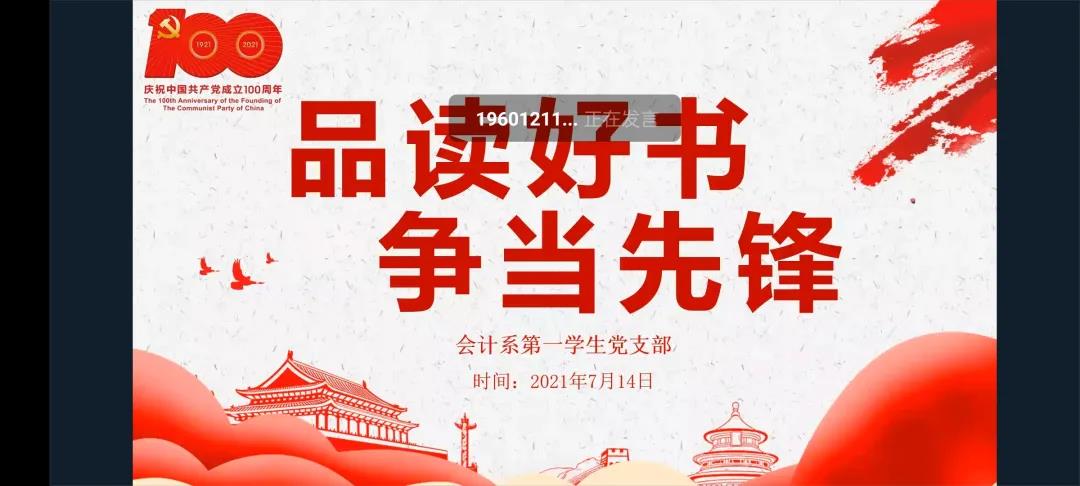 2021年7月14日18时30分,会计系第一学生党支部在线上开展“品读好书,争当先锋”好书分享会活动。本次分享会由学生党员陆立琳同志主持。