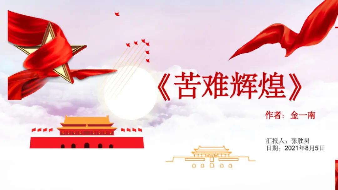张胜男同志分享的《苦难辉煌》是当代作家金一南创作的纪实文学,对20世纪二三十年代的中国社会错综复杂、恢弘壮阔的历史进程,进行了全景式的揭示和剖析,展现了老一辈无产阶级革命家在极其困难的环境下,建立红色政权、率领红军进行战略转移的伟大壮举,展现了中国共产党领导人民进行革命战争的正义、艰辛和伟大。