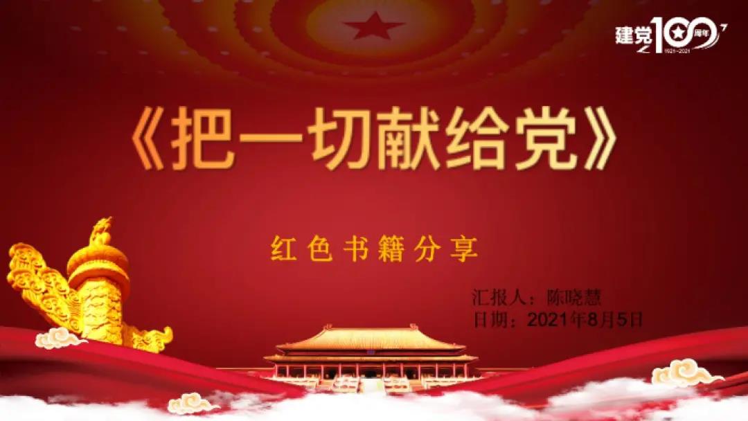 陈晓慧同志分享的《把一切献给党》是有着“中国的保尔·柯察金”称呼的共产党人吴运铎同志的自传,是他一生的真实经历。战乱的时代给了他觉悟的意识,也为他发挥才能创造了条件。这本书以吴运铎的人生经历和奋斗历程为血肉,以共和国的枪炮制造史为骨骼,以一个真正党员的党性觉悟为魂魄,从出版到今天激励一批又一批年轻人,像一个战士一样战斗前行。