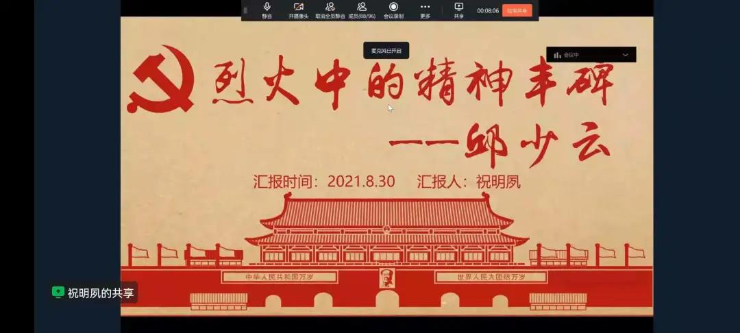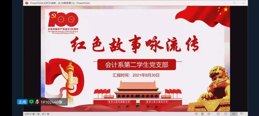 8月30日18时30分,会计系第二学生党支部在线上开展“红色故事咏流传”暑期专题微党课,本次会议由章王杰同志主持。