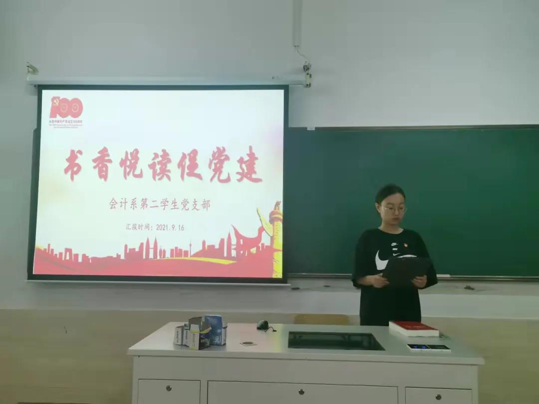 2021年9月16日中午12时30分,会计系第二学生党支部在7-106教室开展以“书香悦读促党建”为主题的读书会,本次读书会由卢雅斯同志主持。