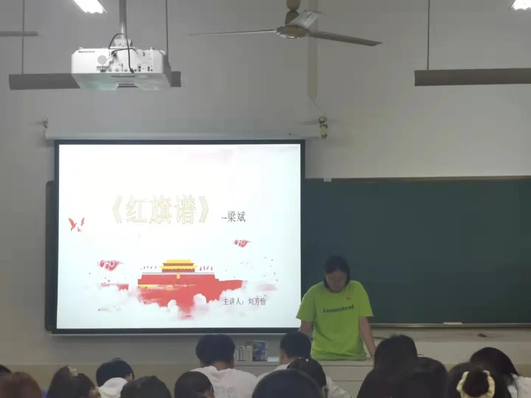 紧接着,刘芳怡同志分享了北方农民革命运动的著名红色故事《红旗谱》,书中主要人物是一名无产级阶战士,在党的正确引领下反抗封建地主恶霸,进行革命斗争,最终改变了农民阶级和封建地主阶级的矛盾,结束悲惨命运的故事。